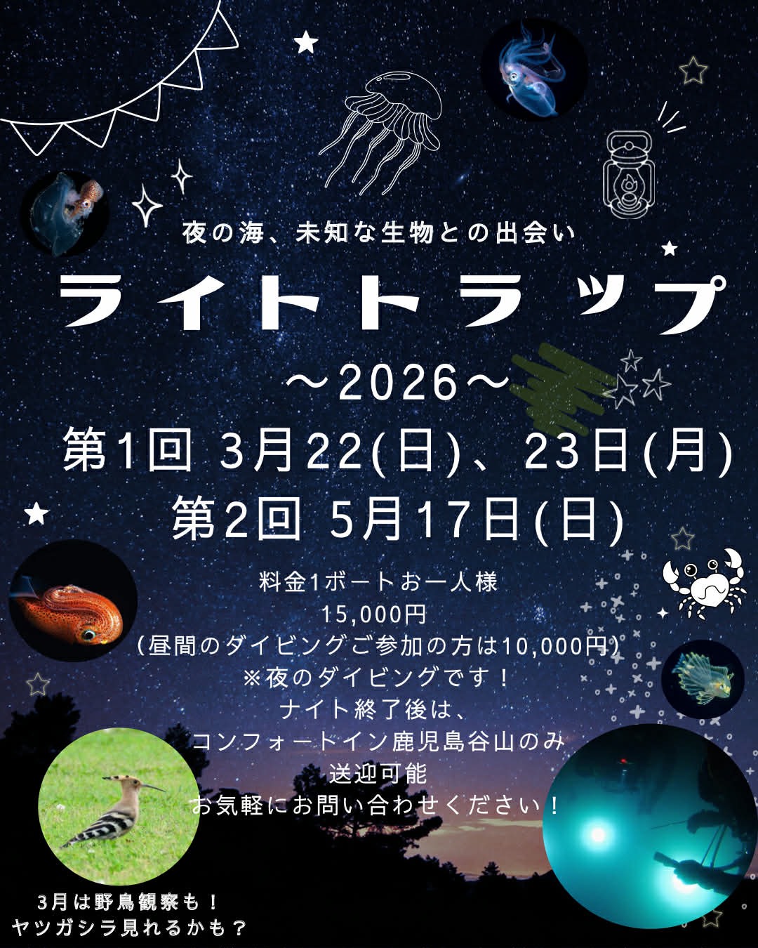(日中ファンダイブから参加の方はライトトラップ料金¥10000)